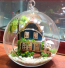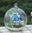 Blue House DIY Miniature House Model Glass Globe Ornament.