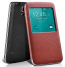 The Premium Real Leather S-View Case for Galaxy S5 protects the smartphone's screen when it is not in use, and it is easily flipped open for full access to the screen. The back cover provides a seamless replacement for the original battery cover and features a rubber seal to maintain the Galaxy S 5's water resistance. When closed, the S-View cover offers instant access to critical features. View the home screen to check the time, weather and other status items. Accept or reject incoming calls with just a swipe, or reject calls with a preset message. If you miss anything, notifications are shown in the recent activity menu of your S-View cover unless phone security settings are activated. Swipe left to quickly access your phone's camera without opening the cover